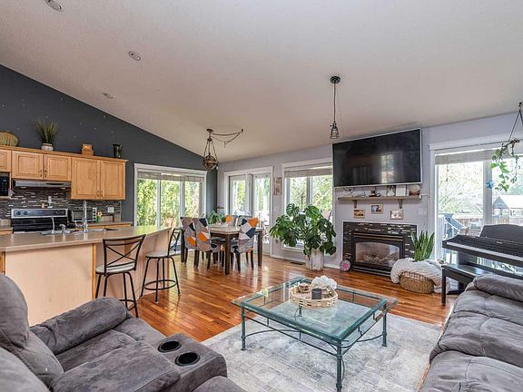 Situated on a large pie-shaped lot, this home offers a private and expansive backyard lined with mature trees—perfect for outdoor living and entertaining. Located in a desirable neighborhood, this property boasts an open-concept floor plan with vaulted ceilings and abundant natural light throughout. The heart of the home features cherry hardwood flooring that flows seamlessly through the kitchen, dining, and family room, where a cozy gas fireplace adds warmth and charm. The kitchen is both stylish and functional, equipped with maple cabinetry, a central island, and a walk-in pantry. The main level includes three generously sized bedrooms, including a primary suite complete with a 4-piece ensuite. Convenient main floor laundry adds to the home's thoughtful layout. Downstairs, the fully finished basement offers an expansive family room with a second gas fireplace, a fourth bedroom, and a 3-piece bathroom—ideal for guests or growing families. Additional highlights include a double attached heated garage, ample storage space, and a backyard shed for added convenience. Don't miss your chance to own this exceptional property that combines comfort, space, and privacy. Check out the 3D virtual tour!