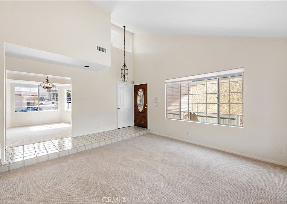 This spacious 2,500+ sq ft home is nestled on a quiet, tree-lined one-way street. Upstairs, oversized bedrooms with walk-in closets include a primary suite with a private balcony, expansive closet, and roomy en-suite bathroom. The living and dining rooms, with high ceilings, flow seamlessly into the kitchen and family room, ideal for entertaining, while recessed lighting, a brick fireplace, and bay windows add elegance. The family room leads to a tranquil backyard shaded by mature trees, and the separate laundry room offers convenient storage for linens. New carpet, window treatments, and a two-car garage with 18-foot ceilings and abundant storage complete this impressive home, located just minutes from the beach, freeways, and shopping.