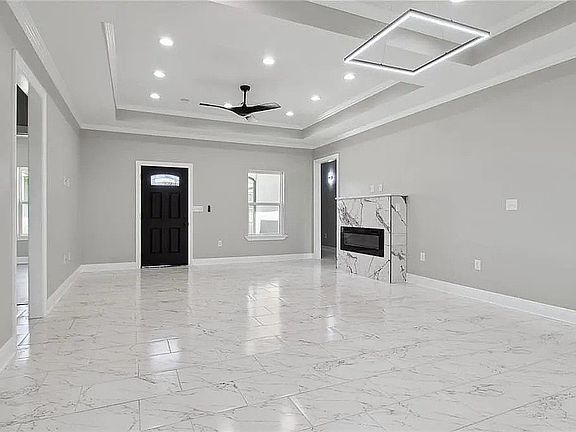 Youll love the spacious kitchen featuring stainless steel appliances, quartz countertops, perfect for cooking and gathering with family or friends. The living room and primary bedroom both feature tray ceilings, adding a touch of sophistication.