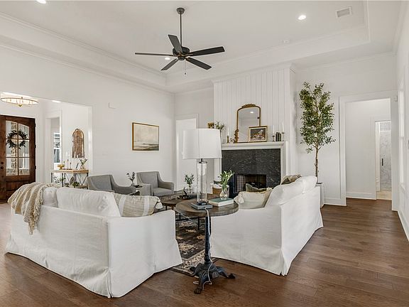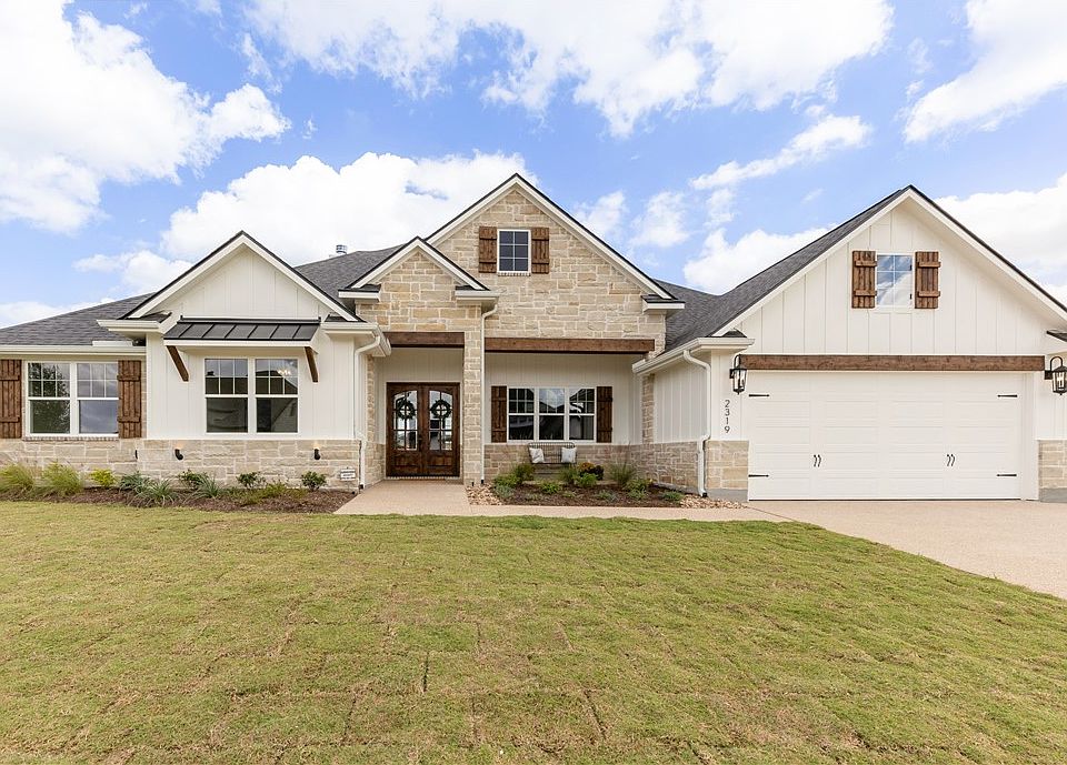 Welcome to 2319 Terrapin Tr., a Fall Parade home, where custom design meets craftsmanship in Reece Homes "The Grayson" plan. With four generous bedrooms, four bathrooms, a bonus living area, and a dedicated study, this home is crafted to enhance everyday life. The living room, adorned with hardwood floors that flow throughout the common areas and primary bedroom, overlooks the serene backyard. The kitchen is a chef’s dream, featuring GE stainless steel appliances, a stunning Carrara White polished marble island, and sophisticated Black Mist honed granite countertops and backsplash. Equipped with a gas cooktop and built-in wall oven, this kitchen is as functional as it is beautiful. A large fireplace, framed in Black Mist honed granite, adds elegance and warmth to the space. Retreat to the primary suite, a serene haven. The en-suite bathroom features split double vanities, a soaking tub, and a walk-in shower. The expansive walk-in closet, which connects directly to the laundry room, offers unparalleled convenience and storage. Additional conveniences include a well-appointed mudroom that provides direct access to the laundry room and garage, enhancing the home’s practicality. Step outside to your private outdoor oasis, where a Coyote grill awaits, perfect for alfresco dining and entertaining against the backdrop of your landscaped backyard. This home masterfully combines high-end finishes with thoughtful design, creating a space that is both luxurious and functional.