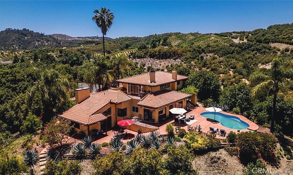 A hidden gem in the heart of Temecula’s countryside, offering privacy and tranquility. Expansive 3,354 sq ft vintage-style home with timeless architectural details and warm finishes. Spacious living and dining areas, perfect for Family/ Friends gatherings and entertaining guests. Large kitchen with classic cabinetry, ample counter space, and natural light 4 generously sized bedrooms, including a luxurious primary suite. Three well-appointed bathrooms designed for comfort and convenience. Plenty of space for gardening, outdoor recreation, or potential future development. Peaceful setting yet just a short drive to wineries, shopping, dining, and top schools. This property combines vintage charm with modern space, making it a perfect retreat or family estate. Experience the serenity and beauty that only a property of this scale can offer. Over 9 acres of land surrounded by picturesque views of rolling hills and nature, planted with over 600 Haas avocados trees. Don’t miss the opportunity to make this magical oasis your own!