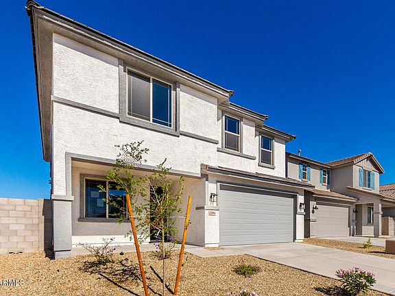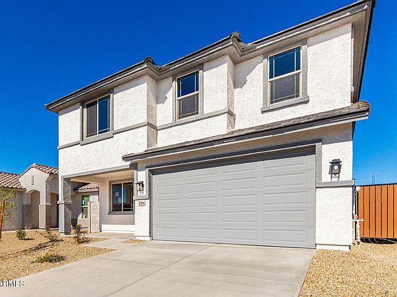 The Aspen floorplan is one of our most popular layouts with 2,624 sq. ft. and 5 bedrooms, 3 full baths, loft and huge backyard! The kitchen is open and features rich warm brown shaker cabinets, beautiful white quartz countertops and tiled backsplash plus 2-toned paint and upgraded flooring throughout. This home is on a N/S facing lot and mountain views of the White Tanks and Estrella Mountains! Estimated Home Completion: September 2025!