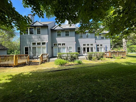 1.5 miles from the slopes of Mount Snow with free shuttle service and close proximity to restaurants and shopping. This nicely appointed 2.5 story townhome is open and bright with recent upgrades. It features an organized entryway with storage for all of your outdoor gear. A recently renovated kitchen with quartz countertops, stainless steel appliances, tiled backsplash and ceiling height cabinets radiates a fresh modern ambiance. From the dining room, step down to the spacious living room which features vaulted ceilings and a wood burning fireplace creating a cozy oasis to unwind. Step out to the back deck which offers scenic views of the Deerfield River embracing a sense of peace and tranquility. Upstairs a primary en suite and a second bedroom with vaulted ceilings, exposed beams and a jack and jill bathroom await. The bathrooms have been updated with new flooring and vanities. The third bedroom is a large private loft with an egress window. Enjoy a common firepit and level yard space for outdoor fun. The HOA fee includes firewood, trash removal, plowing, water and lawn care. Water heater newly replaced, exterior siding replaced 2023. Being sold mostly furnished, excluding personal items.