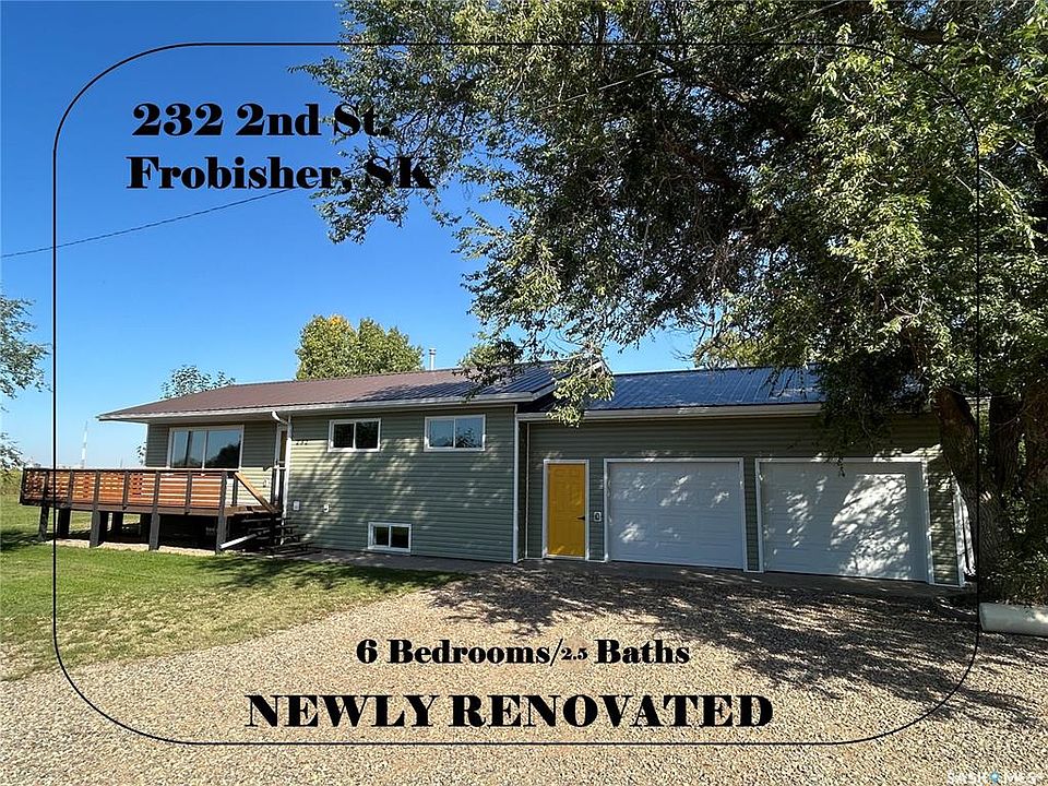 Talk about a real Cinderella story! Lucky is the family that moves into this home, located in the quaint and quiet village of Frobisher, SK. MAJOR renovations have been completed where you can feel like you’re moving into a New-Build Home. Some renovations include new insulation & siding, windows, completing the garage walls with insulation and gyproc, beautiful wraparound deck, brand new kitchen including all new appliances. There are six bedrooms, YES SIX and two full bathrooms. You will never outgrow this house. Even the yard is huge. (The utilities are only approx a few years old and have been reviewed by licensed contractors to ensure good working order). The main floor holds an open concept living room /kitchen/dining room with loads of new windows (garden door). Completing this level is 3 bedrooms , a 4 piece bathroom and a 2 piece off the Primary bedroom. Heading downstairs you’ll find another 3 sizeable bedrooms plus a small Den/family room as well as another 4 piece bathroom (an 4th bathroom is roughed in) and the Utility room too. This is a FANTASTIC HOUSE! MOVE IN READY! Don’t hesitate. Call to view this today. Priced to Sell.
