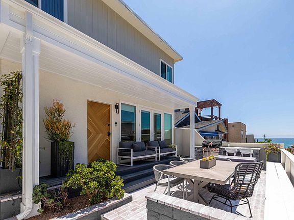 Furnished Rentals (1-11+ Month Terms) Tastefully decorated ocean view walk street beach house with air conditioning, a large patio with a sitting area, fire pit, & a built-in BBQ, perfect for a couple of glasses of vino and dinner! Two short blocks to the beach in the best part of Hermosa Beach! 4-Bed (2-Kings, 1-Queen, & 3-Twins with 1-Twin being a Trundle) 4-Bath 2,000 Sq. Ft. home equipped with a 1-car garage & 1-street parking permit! The house is beautiful, comfortable & located in a very quiet neighborhood with ocean views inside & out! Just bring you swimsuits, flip-flops, & sun block! Your family will love this beauty! Prices go up during the Summer months. Small pets considered!