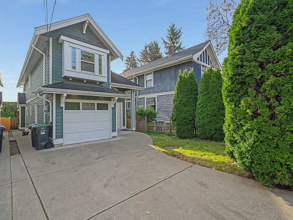 Owner-Built Home in Desirable Queens Park! Located on a quiet street, this well-maintained 4-bedroom + den home offers a functional layout with 3 bedrooms and a den upstairs, plus 1 bedroom on the main floor. The bright south-facing living and dining areas open to a sunny backyard through French doors, perfect for entertaining. The primary bedroom features a large walk-in closet and ensuite. Recent updates include new flooring, deck, most windows, hot water tank, and EV charger. Enjoy stainless steel appliances and a single attached garage with additional driveway parking. Conveniently located within walking distance to Royal City Centre, Queens Park, and 6th Street Uptown restaurants and community events, with easy access to SkyTrain, schools & new community center.
