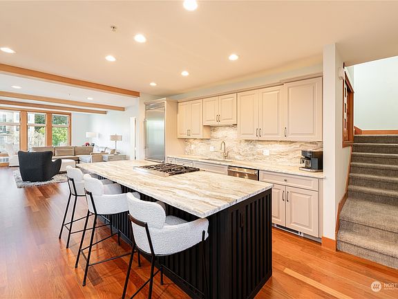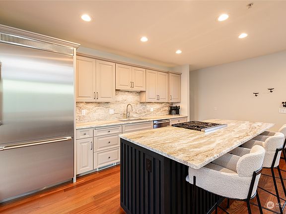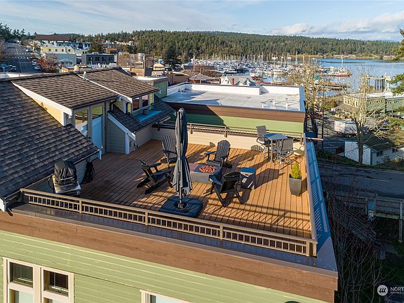 In the heart of Friday Harbor, this beautiful 2-bdrm, 2-bath condo offers stylish, updated living spaces, spacious rooftop deck, and direct access to one of Washington’s most coveted destinations. Walk off the ferry to this private, elegantly refreshed home, including new paint throughout, engineered hardwood floors and woodwork, and modernized lighting. Open floor plan features kitchen with new Thermador appliances and granite countertops, updated cabinetry, plus abundant windows, office alcove and gas fireplace in living and dining area. Upper level is primary suite, with expanded closets and upgraded bath. Secure parking space accessed by building elevator. Enjoy this home full, part time, or as a vacation rental investment property.