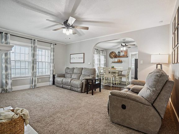 Oh my goodness!! You will love this tastefully decorated two-bedroom, 1 bath home in a peaceful neighborhood. Upon entering the front door, you will be greeted by a large living room with arched doorway, large windows, crown moulding and a newly white-washed wood burning fireplace. Nearby is a generously sized dining room with new flooring, paint, light fixtures and an abundance of natural sunlight. The kitchen is completely renovated with newly painted 42-inch upper cabinets, new tile backsplash, counter tops, paint, lights, flooring, car siding ceiling and stainless-steel appliances. Both main floor bedrooms are nice sized with good closet space and can easily accommodate your oversized bedroom furniture. A full bathroom is located between both bedrooms and has recently been completely remodeled with a modern touch. Downstairs has a third non-conforming bedroom with new carpet, paint and drywall on the ceiling. The basement floors and walls have a fresh coat of paint on them and offer plenty of storage and or potential for more finished living space. Outside you will love the updated landscaping with river rock and flowering plants around the house. The backyard showcases a massive concrete patio, which is sure to impress your family and friends. A detached 2-stall garage is also a nice bonus. Call today to see this cute, affordable and updated home.