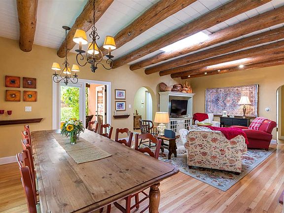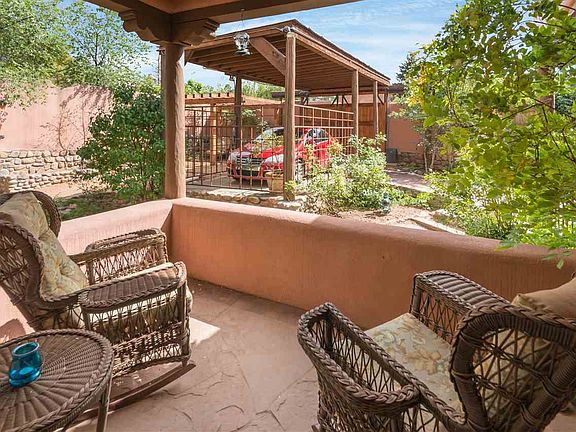 YOU WONT BELIEVE THE SPACIOUS HOME, ATTACHED GUEST HOUSE AND GARDENS THAT SIT HIDDEN BEHIND THIS SANTA FE WALL JUST- A HOP-SKIP-AND-A -JUMP TO DOWNTOWN DESTINATIONS INCLUDING FORT MARCY ATHLETIC FACILITIES, SHOPPING, RESTAURANTS, POST OFFICE. Sitting in town at the foot of the Sangre Mountain range (just head right up the hill to ski or soak up the tranquility at 10,000 waves!) this home sits on a generous lot with plenty of room for private outdoor entertaining and has multiple garden spots. Cooks kitchen is divine and the heart of the home. Bedrooms are spacious and bathrooms renovated. Attached guest quarters are huge with full kitchen. Ideal location. Ideal for a family who needs extra space, lodging for a caretaker, or for visiting friends who drop into Santa Fe. Carport and walled entry make it a great lock-and-leave.