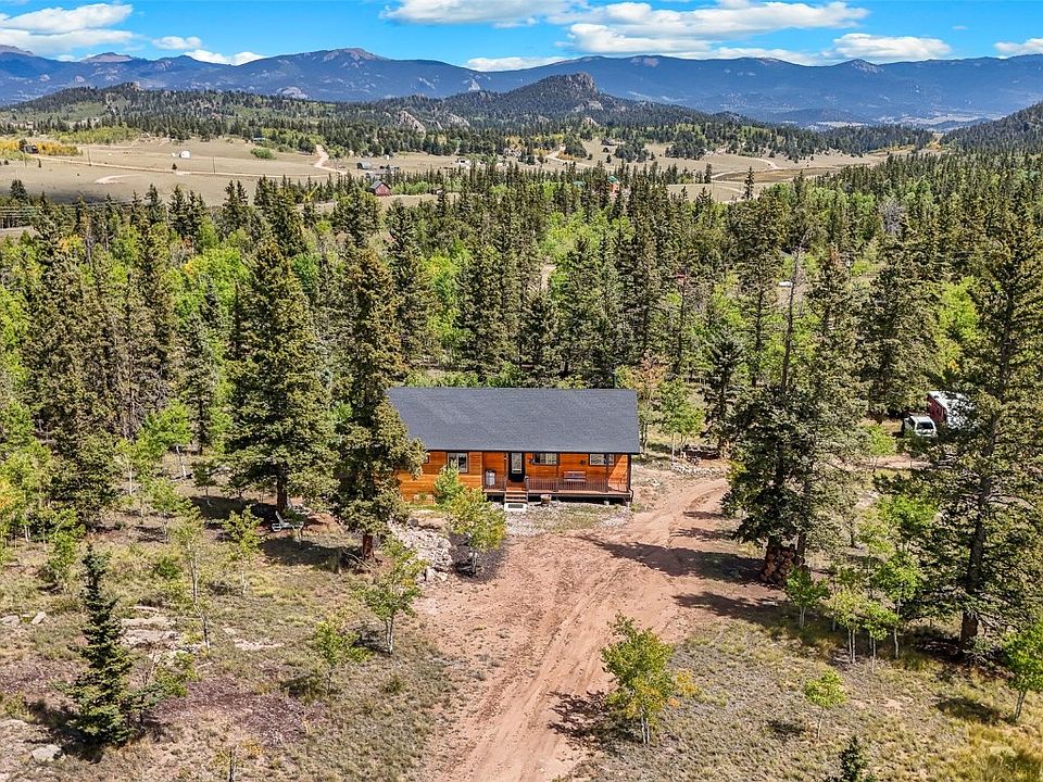 PRICE IMPROVEMENT! Unwind in this 2017 modern mountain home offers a blend of luxury and tranquility on 2 acres of breathtaking landscape. Boasting three bedrooms and two bathrooms. The generously proportioned living area showcases a modern aesthetic with pine accents, TG ceilings, integrated surround sound, ample windows with window treatments, hardwood flooring, and a welcoming fireplace. The state-of-the-art kitchen features high-end appliances, water softener, and polished granite countertops. Each bedroom offers a peaceful retreat, with the primary suite featuring an en-suite bathroom. Noteworthy attributes encompass a corner plot, RV docking area, circular driveway, custom-built garden beds, landscaping adorned with decorative rock, and supplementary insulation. The deck provides an ideal setting for outdoor barbecues and relaxing post-mountain excursions, while the front porch is ideal for morning coffee and wildlife watching. Surrounded by a diverse mix of trees, this home offers beauty in every season. It is located in the scenic mountain community of Indian Mountain, with convenient access to hiking, biking, hunting, NFS, and local fishing. County-maintained roads that enable year-round accessibility to Hwy 285, Colorado Springs, Metro Denver, Fairplay, and Breckenridge this home offers the ultimate mountain living experience.