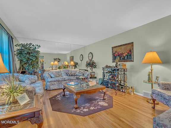 Freehold Twp's Juniper Farms offers this charming 4 bedroom 2.5 bath colonial on an oversized lot. This home offers hardwood floors in the formal living room and dining room tiled kitchen, spacious family room with wood fireplace and sliders to paved patio. 2nd level has 4 spacious bedrooms and 2 renovated bathrooms that include primary suite with 2 walk in closets, and new tiled bath. Full finished basement with custom wood bar is perfect for entertaining. Exterior features inground pool with vinyl liner, fenced yard, paved patio on oversized lot. Leafguard recently installed with warranty. Great opportunity to get into highly desirable Freehold at a great price!