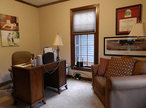 This Beautiful 4BR Colonial Home is nestled on a private wooded lot w/HW floors, spacious living room w/arched FP, dining room, kitchen, and befits area. Master Suite, 3 additional large bedrooms, powder room laundry and office/music room, deck, fenced area, and screened breezeway-porch connecting to an oversized garage. Southern living at it's best! Easy to show Convenient to shopping , & I-85.