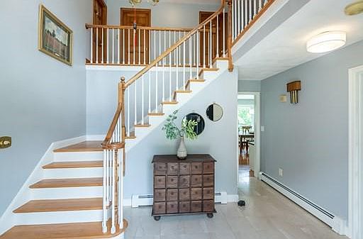 This striking home offers serene living in a peaceful neighborhood setting. Space abounds for comfortable living & entertaining w/formal living room with fireplace, formal dining room, large eat-in kitchen w/granite counters and pantry cabinet, office w/built-ins, bright & cozy sunroom, family room w/fireplace, great room with vaulted ceiling, large windows & wetbar and adjoining 2nd office or craft room. Hardwood flooring throughout. The primary suite, accessed by a gracious stairway and 2-story foyer, has a private bath with jetted tub and dressing room with custom closet organizer system. 3 add'l large bedrooms with ample closet space, updated full bath and laundry room complete the 2nd floor. The 3-season room and deck overlook the zen-like yard prof landscaped with firepit and specimen plantings. The finished LL offers a playroom, full bath and open concept family/recreation room, full kitchen with breakfast island with seating, lots of natural light and walk-out to covered patio.