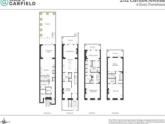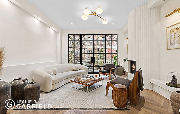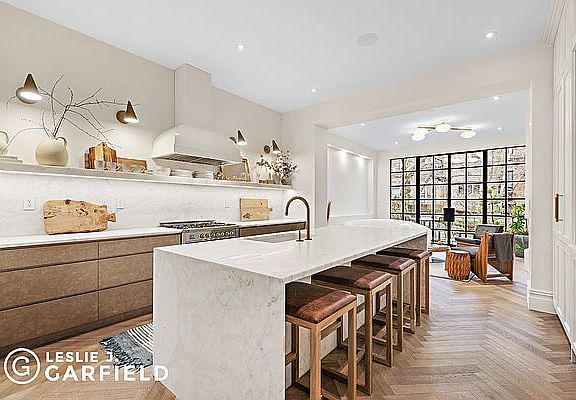 232 Carlton Avenue is a stunning, newly renovated townhouse on one of the best blocks in Fort Greene. Heralded by Architectural Digest, Vogue, Brownstoner, and Design Anthology for its spectacular reconfiguration and imagination, the townhome is a 4-bedroom, 4.5-bathroom home sporting three multi-level terraces and a lush rear yard. Available immediately and fully furnished with the highest-end custom pieces. Upon entering the parlor floor, two towering double-arched doors stand at the marble foyer. The entry hall is characterized by its high ceilings, herringbone white oak flooring, and striking detailing. To the left is a tasteful dining room just off a remarkable chef's kitchen which leads into a sundrenched living room in the rear. This stylish space features a fluted cylindrical gas fireplace and a glass-paneled rear wall that looks out on an outdoor terrace above the garden. On warm days, the space allows for easy and cohesive movement between the kitchen, living room, back patio, and garden the perfect space for entertaining. The chef's kitchen boasts custom cabinetry, a large pantry, and a grand marble island with waterfall edges. The home is equipped with high-end appliances like a Fisher and Paykel refrigerator, double-drawer dishwasher and a 36-inch ILVE stove with a 6-burner range and custom hood. The kitchen also has a wet bar and a server's pantry area, which sports a marble countertop, custom shelving, and a built-in wine fridge that can hold up to 48 bottles. A small powder room conveniently sits between the kitchen and dining room. The second floor features the luxurious primary suite, complete with walls of custom closets, a fitted walk-in closet, and a built-in desk. The primary bedroom exudes tranquility and luxury with its private sundeck terrace and a spa-like en-suite bathroom, featuring herringbone hardwood flooring, a custom double marble vanity with storage drawers, a deep soaking standalone tub, and an incredible marble double-head waterfall with glass-enclosed shower and Waterworks fixtures. This floor also includes an additional oversized bedroom, which is currently being used as a media room/lounge. The third floor is configured as two spacious bedrooms, each with its own skylit full bathroom. The front-facing bedroom's en-suite bath contains cement grey tiling, a deep soaking tub, and elegant bronze fixtures. The second bedroom offers direct access to the home's third terrace and is complemented by another full bathroom with a glass shower, bronze fixtures, and white/black tile floors. Below, the garden level houses a versatile recreation space with patio access. It can be used as a guest/in-law suite, playroom, or home gym, as it also features its own kitchen, full bathroom, and sleeping area. This extraordinary townhouse is complemented by a central Nest A/C and security system, designer furniture and light fixtures, a built-in Sonos surround sound system, recessed lighting with dimmer switches elegantly adorning every space, two sets of full-size washers and dryers for convenience, ample storage space, and high-end finishes that set it apart from the rest. 232 Carlton Avenue is located in a prime location, close to the Atlantic Terminal, BAM, only moments from Fort Greene Park, and numerous restaurants, bars, and shops. Manhattan is also just a quick subway or car ride away. An opportunity like this cannot be missed - Fort Greene is one of Brooklyn's most coveted neighborhoods and mint-condition homes built to this standard of luxury rarely come available for lease.