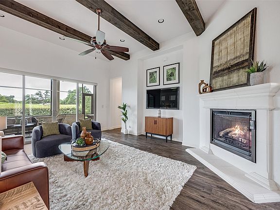 Beautifully landscaped courtyardFarmhouse sinkPremium stainless steel appliancesSoaring wood beam ceilingsGourmet kitchenCustom crown moldingAutomatic privacy blinds