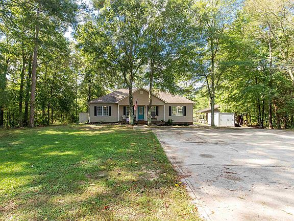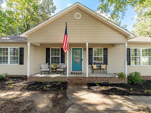 Adorable home in established, NO HOA neighborhoood on 1.32 acres overlooking a pond w/water access. Home sits back off the road w/lots of privacy. No carpet- laminate wood flooring & brand new ceramic tile floors in both baths. Updated lighting fixtures, new granite countertops in the kitchen, kitchen cabinets & both bathroom cabinets have just been painted, several rooms freshly painted, 5 yr old stainless steel appliances- all remaining including the refrigerator. The vaulted Living Room has a gas log FP. The Primary BR has a tray ceiling, on-suite w/walk-in closet & double sinks. The secondary BRs have closet organizer systems. The rear screened porch is great for lounging, watching TV & enjoying the view of the community pond. There is a cabin sytle storage building & tractor leanto. The backyard has a proven abundant garden spot & fancy chicken coop w/storage area. Chickens can stay. Won't last long- schedule to see today. 100% USDA financing available. Agent is related to seller.