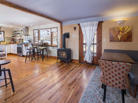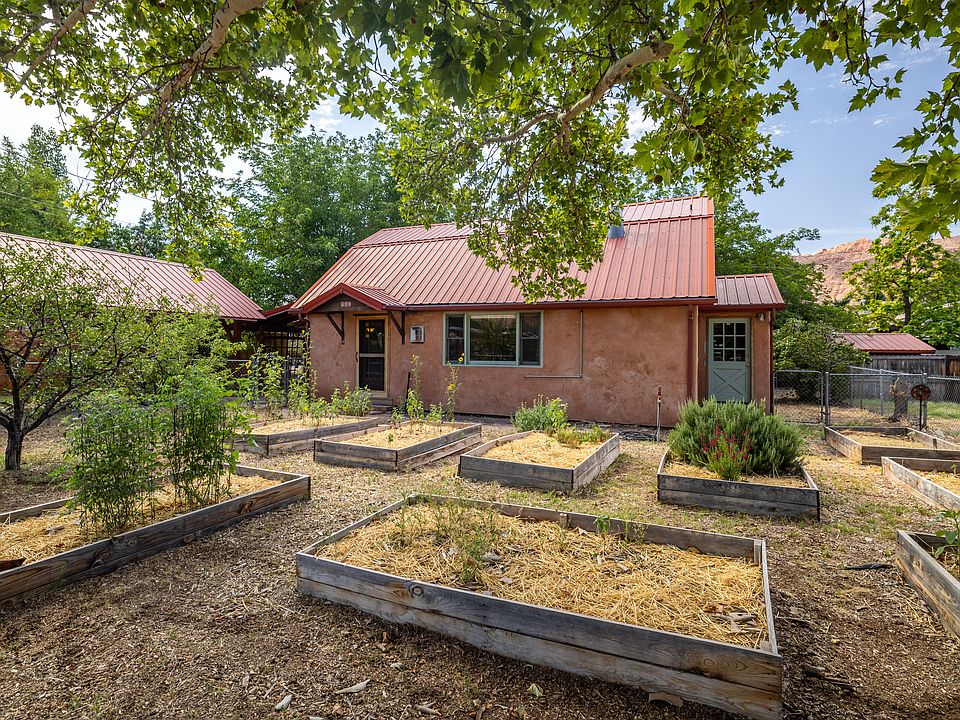 CLASSIC FARMHOUSE CHARM Every corner of this home radiates charm, with unique details that celebrate local artistic flair and quality artisan craftmanship with La Sal milled pine wood features throughout. Whether you're basking in the enchanting morning light next to the warm gas stove, or enjoying the luxury of the private backyard space, this home is sure to be a place of comfort and incredible convenience for years to come. The open kitchen features gorgeous butcher block wood counters, stunning glass cabinets, a five-burner stainless steel stove, four-door refrigerator, a formal dining area, and a cozy bistro nook overlooking the quintessential Americana ball fields that hosts games and festivals of multiple cultures. With plaster walls and refurbished oak flooring throughout, the main level of the home also includes the primary bedroom which offers patio access to one of two patios, and the shared spacious bathroom with soaking tub. Up the stairs, you will find additional living space, or a secluded secondary bedroom, with vaulted ceilings and offering abundant closet spaces. Step outside to the enclosed yard space where a small orchard thrives with cherry, apple, pear and peach trees, and several built raised beds promise seasons of fresh, homegrown produce. Got gear? The 350 square foot basement offers spacious secured on-site storage. Located in the heart of Moab, this property combines creative living with urban access to the Mill Creek Parkway, local parks, grocery stores, restaurants and all other attractions that make 'Old Town' downtown living a dream.