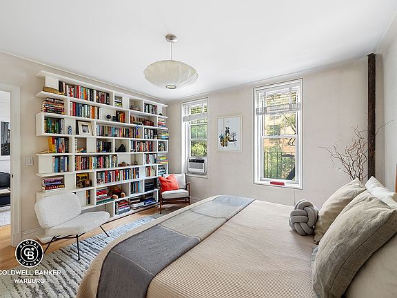 Storage is a highlight! Custom closets and architect-designed built-in bookshelves throughout add both style and practicality. The apartment also benefits from updated electrical and plumbing systems, windows, and surround sound in the kitchen and living room.
