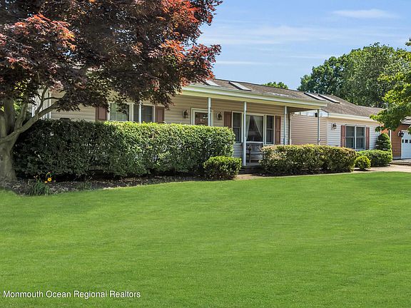 This Expanded ranch is larger than it appears w/Welcoming front porch on a Beautiful street Huge private Lot 135 x 75 with so many possibilities As you enter notice Cathedral Ceilings and open floor plan w/Skylights. Huge eat in Kitchen w/island, desk area and extra butlers pantry. Sliders leading the BIG back yard w patio, gazebo fenced in very Private w/AG pool and 2 big sheds. Come make it your own w some TLC could be your Sanctuary. Home has Large Living Rm w Fireplace and Family room. All 3 Bedrooms are large. Plenty of storage throughout the home. Laundry room & 2 Full Baths. Beaches & Boardwalk only 5 min away. Convenient location close to GSP, 18 & 70 for travel.