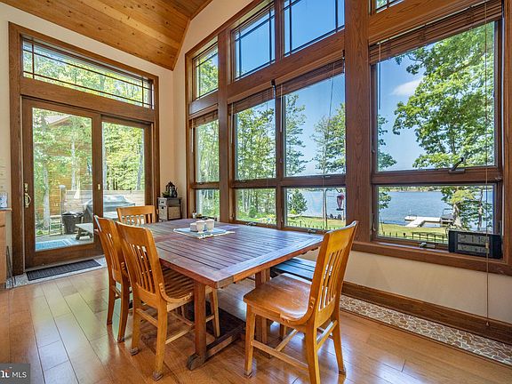 Amazing lakefront home with expansive views of Deep Creek and 122 feet of premium, level lakefront and a private Type A boat dock! Incredible living room with a wall of windows overlooking the lake and a vaulted ceiling, custom wood floors, and an oversized stone fireplace. The upscale, gourmet kitchen features stainless steel appliances and floor to ceiling windows along the lakeside dining area that bring in natural light and breathtaking water views. The spacious master suite has a sitting area, widow seat facing the lake, and private bath with double vanity sink and steam shower with pebble ceramic tile flooring. The upstairs rec room is also the 4th bedroom/bunk room that is perfect for games and hosting family and friends. The exterior features a lakeside deck/porch with hot tub and fire pit near the shoreline to create those special memories. Also featuring a 2 car attached garage and radiant floor heat. Don't miss this opportunity to buy a great house on a great lakefront lot!