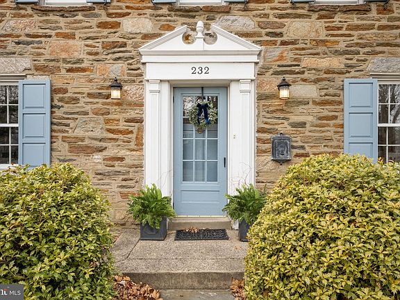 Welcome to 232 Fisher Road, a distinguished stone Colonial residence in the heart of the highly sought after neighborhood, Jenkintown Manor, a family friendly neighborhood known for its tree lined streets and walkable sidewalks. This home artfully combines timeless elegance and classic charm with modern comforts. This 5 bedroom, 3.5 bathroom well appointed home is in impeccable condition, offering an expansive 2,696 square feet of living space, set on a generous 10,656 square foot lot, providing ample room for both indoor and outdoor activities and entertaining. The gourmet eat-in kitchen with high end cabinetry and recently updated quartz countertops features a doublewall-in oven with warming drawer, wine refrigerator, and an updated gas range. Adjacent to the kitchen is the elegant dining room which features a large bay window and which was recently updated with crown and wall moulding. The large inviting living room, recently updated to include custom built in bookshelves and cabinetry, and featuring a wood burning fireplace is the perfect spot for cozy evenings or entertaining. Off of this living room, step onto the screened in porch, a cosy indoor/outdoor living space looking out the well maintained, mature garden. The family room boasts custom built ins and a gas fireplace. A half bath completes the first floor.