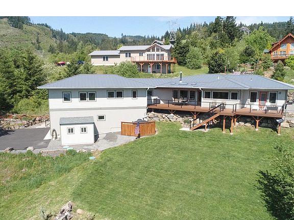 Enjoy COLUMBIA RIVER VIEWS from this gorgeous, custom handcrafted home on 1.48 acres. 3 Bedrooms/3 Bathrooms including SEPARATE LIVING QUARTERS with its own kitchen, bath, laundry, living room and separate entry. Vaulted Great Room ceiling, quartz counter tops, SS appliances, built-ins, office, Lopi wood stove and NW hardwood finishes. 12'W X 10'H garage door to park your toys. Rain collection system for irrigation. Huge composite deck & life-time metal roof. Multi-camera security system.
