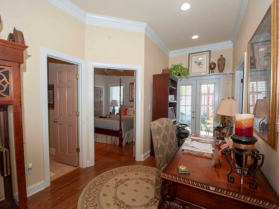 Location, location and a fantastic gated neighborhood with an hidden oasis of lush landscaping in the backyard.. The patio has a retractable sun setter awning that provides shade and a lovely seclusion from the sun and complete backyard privacy. This backyard has a dry creek bed, adorable bridge and relaxing swing for relaxation and year around enjoyment. Unlike any home in Geneva Gardens, this home features hardwood flooring, designer colors, built-in in both office/den, and formal dining room and beautiful plantation shutters. This split plan with nice size bedrooms, foyer, family room overlooks the backyard and has a fireplace and built ins. One bedroom is currently being used as a den with extensive built in and over sized closet. The living/dining room is spacious and open, the fireplace has gas logs added with a remote to ignite them and is flanked with built in bookshelves. The lanai is a relaxing area to enjoy the outdoor view or additional space for the perfect reading nook. The bright and airy kitchen has granite counter top with breakfast bar, stainless steel appliances, spacious pantry, elaborate cabinetry, and breakfast area that also overlooks the oasis of the backyard. The over-sized master is off the kitchen and has a nice master bath with a large walk-in closets, separate tub and shower plus 2 vanities. Also features several cabinets for linens and storage. Laundry room is spacious with a sink and lots of cabinets. The walk up attic in the garage which makes for easy floored storage! Over sized garage with a storage room. Gated neighborhood features beautiful fountains, pond, and clubhouse with saltwater pool. Don't miss this buying opportunity.