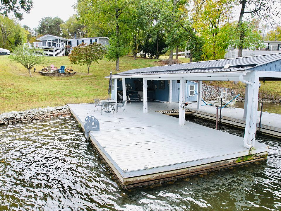 Northern side...Decorated to PERFECTION...clear deep water, right at 9ft! FURNITURE will stay (yay!!) and appliances!! House features 3 bedrooms and 2 baths. Drive in carport. Big storage building. Another detached carport. Covered big back deck...perfect for taking in all the views. Firepit. Boathouse is adorable..bar seating...kayak launch! What more could you need? Bring your clothes and start enjoying the lake!! Hyco is calling you name at this cute as a button property!!