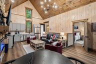 This 2 -bedroom cabin sits right on the water and offers a TVA Permitted-dock. It has everything you need for a relaxing, fun-filled stay. Guests can enjoy kayaking, hiking trails, a community boat dock and even a small farm — all just minutes from Dollywood, Pigeon Forge, and Gatlinburg. Welcome to ...