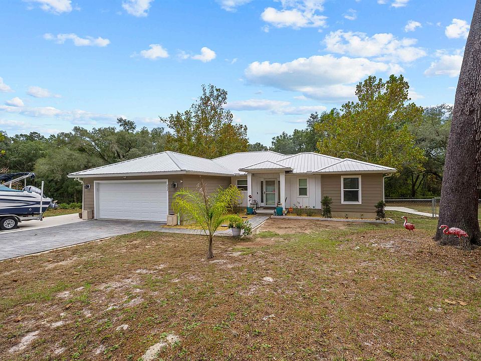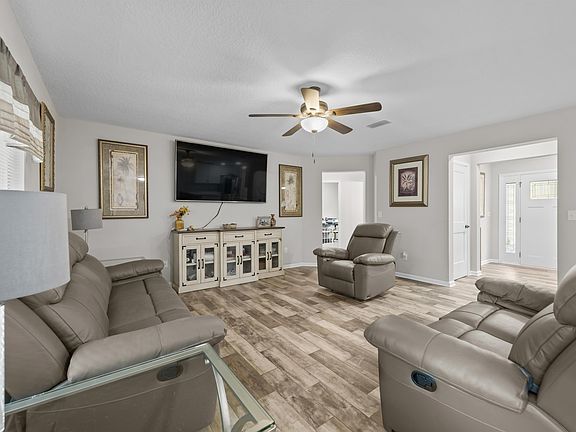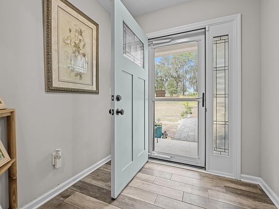 Welcome to Your Dream Home! This stunning, like-new three-bedroom, two-bath residence sits on a spacious and private 0.79-acre lot, complete with a fenced yard and convenient RV and boat parking. The open-concept layout is ideal for both everyday living and entertaining. The gourmet kitchen features quartz countertops, custom cabinetry, a tiled backsplash, recessed lighting, stainless steel appliances, and a California-style island that flows seamlessly into the sun-drenched dining area. The adjacent great room boasts new wood-look tile floors, multiple windows overlooking the private backyard, and French doors leading to the screened lanai. The primary suite is a true retreat, offering two walk-in closets and a luxurious bath with dual vanities, a soaking tub, and a tiled walk-in shower. Two additional bedrooms provide versatility, one currently used as an office, complemented by a beautifully upgraded guest bath and a spacious laundry room. The outdoor living space offers a relaxing shaded, screen porch, large concrete patio for BBQs, and plenty of room for all your toys. No HOA or community fees. This exceptional home combines style, functionality, and privacy, making it a perfect place to call your own.
