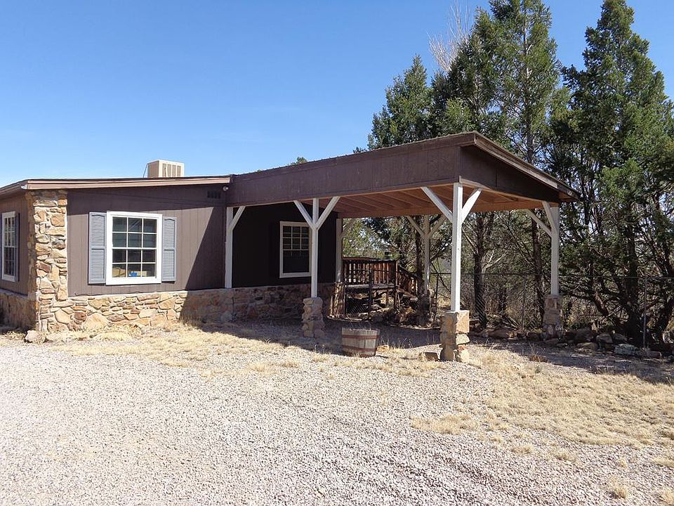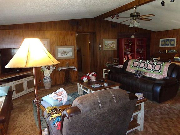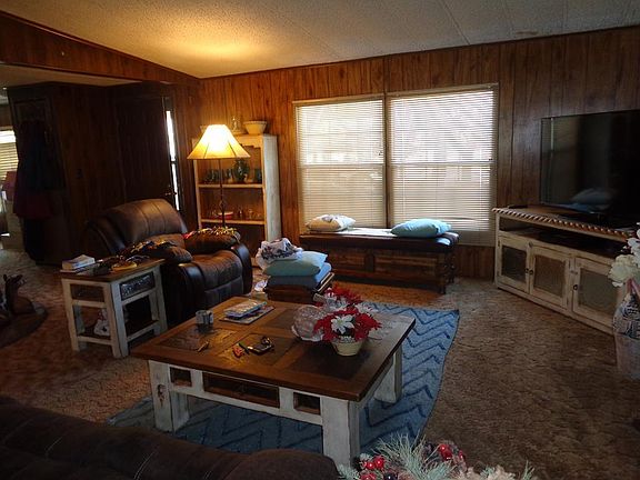 Wonderful setting on a corner lot. Two lots adjoining included with property.. Great mountain views and deck in back to enjoy the space & serenity. Three good size bedrooms and 2 full baths. Master bedroom is privately located on one side of the home. Master bath has a garden tub & separate shower. Large closet. Living room, dining area & dining room & or den/office area with built ins and book shelves. Kitchen has a breakfast bar with plenty of counter space, lots of cabinets, gas stove, refrigerator. Utility room. Two carport areas, enclosed sun room (not included in square footage) plus deck in back, partially fenced yard & storage building. Circular drive.