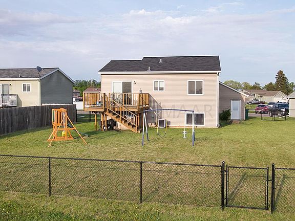 The perfect home just minutes from Fargo! Small town living with no backyard neighbors, a HUGE lot and a fully fenced yard with a double side gate! The kitchen has extra pantry space, enjoy the back deck to watch the sunsets and enjoy that huge yard! Master offers a walk in closet. All of this AND LOW SPECIALS (under $5000) this is a must see! This is a great 4 bedroom 2 bathroom 3 stall garage home. High school options- Central Cass or West Fargo. Brand new elementary school in Mapleton! NO flood plain worries, the city is protected by a FEMA certified dike. Call your Realtor to see it today! **microwave is being replaced*