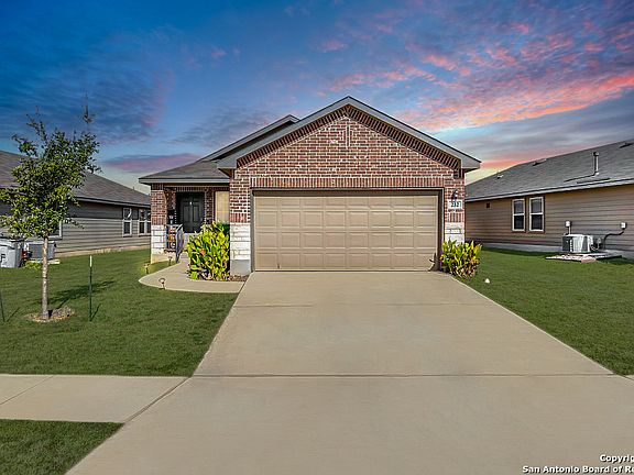 Discover the perfect blend of comfort and convenience in this beautifully designed 3-bedroom, 2-bathroom home nestled in the sought-after River Bend Golf Community in Floresville, Texas. With 1,296 sqft of thoughtfully planned living space, this one-story gem offers an inviting open floor plan, ideal for both relaxing and entertaining. The heart of the home features a modern kitchen adorned with granite countertops, stylish cabinetry, and a layout that flows seamlessly into the living and dining areas. The spacious primary suite boasts an oversized shower, ensuring your daily routines feel like a retreat. Step outside to enjoy the covered patio overlooking a fully landscaped oversized space equipped with full-yard irrigation and privacy fencing-perfect for weekend gatherings or serene evenings under the Texas sky. The home also includes blinds throughout for added privacy and comfort. Located just minutes from shopping, recreation, and only a 25-minute commute to San Antonio, this home combines the best of suburban tranquility with city convenience. Whether you're hitting the golf course or exploring the charming town of Floresville, you'll love calling this place home.