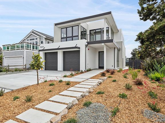 Contemporary masterpiece nestled in the coveted Alsace Lorraine neighborhood. The main residence boasts a spacious, open floorplan with a stunning 20 ft. tall ceiling that bathes the home in natural light. Enjoy the luxury of a large ground-floor bedroom with a separate entrance, perfect for remote work. The expansive primary suite features with balcony, while the upper lounge offers its own view deck, ideal for relaxation. The property includes a fully-detached ADU, privately oriented from the main house, with 1 bedroom, a spacious open floorplan, and a patio, providing versatility and privacy. Situated on an oversized lot, this home is just a couple blocks from beach access and the California Coastal Trail, offering endless opportunities for outdoor adventures. Enjoy the convenience of being close to historic downtown Half Moon Bay, with its charming shops and dining options. Embrace the coastal lifestyle in this exceptional home. The images shown are renderings and do not depict actual home except for photo of construction.