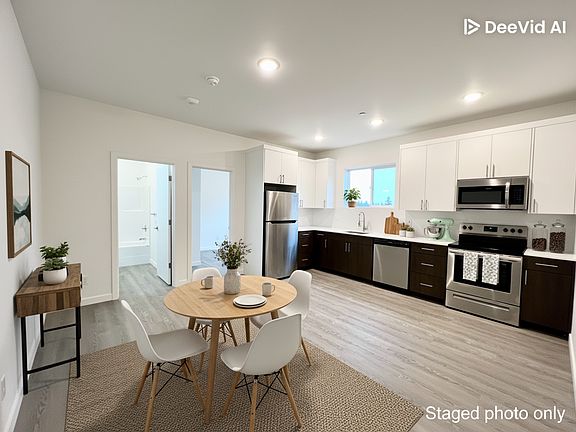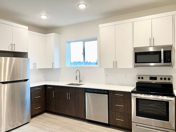 Immerse yourself in the vibrant urban lifestyle of Portland's North Tabor neighborhood. This community combines style and comfort, featuring inviting wood-style flooring that provides both warmth and resilience. The contemporary kitchen boasts sleek stainless steel appliances, offering a modern touch for cooking and entertaining.