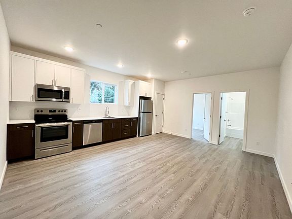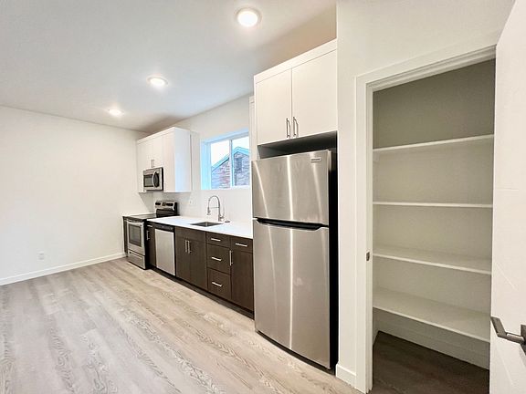 Contemporary kitchenBright layoutsAmple natural lightStainless steel appliancesIn-unit washer and dryerWood-style flooringSleek cabinetry
