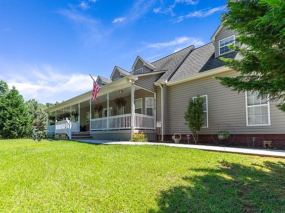 This stunning country retreat is a masterpiece of comfort and style, nestled on 3.37 private acres of beautifully landscaped grounds and a concrete driveway. The spacious 4 bedroom 3 1/2 Bath home boasts custom cabinets in every room, wood floors, tiled floors and sheetrock walls. The dining room is perfect for entertaining, while the laundry room on the main floor offers convenience and practicality. The 2 car attached garage has tiled floors that is great for entertaining. The 2 car workshop with upstairs storage provides ample space for vehicles and hobbies. The huge wrap-around porch with vinyl siding invites relaxation and enjoyment of the peaceful surroundings. There is outbuildings and storage buildings that will allow you have 8 covered parking spots. The upstairs is spacious with a den that is great for entertaining and has a great size bedroom. The Master on the main is spacious with a bedroom, huge closet and master bath that has a soaking tub and separate shower. Close to Whitewater rafting on the Ocoee....