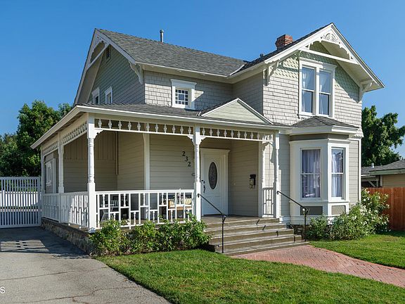 Experience Monrovia's rich history in the beautifully updated Eastlake Stick Victorian known as the Joseph Sartori House, built in 1887 by Monrovia's first treasurer and a founding member of the First National Bank of Monrovia. This spacious 4-bed, 4-bath home blends historic charm with modern updates. Welcomed by a character-filled wrap-around porch ideal for enjoying Southern California sunsets, the formal entryway showcases late 1800s charm with a chandelier and gleaming hardwood floors. Pocket doors lead to a parlor featuring high ceilings, and a bay window overlooking the professionally landscaped yard. Another set of original pocket doors lead to the formal dining room with an antique Keeley Stove Company Columbian parlor stove. The remodeled kitchen boasts stone counters, custom tile backsplash, stainless steel appliances, a walk-in pantry, a spacious island and built-in buffet counter ideal for entertaining. The first floor also hosts a bright bedroom, ideal for an office or den, with an attached laundry room and a 3/4 bathroom. A claw foot bathtub graces another 3/4 bathroom, completing the floor. Ascending the original staircase leads to three spacious bedrooms and two additional bathrooms. The primary suite impresses with ample natural light, a generously sized closet and a balcony. Its bathroom features two sink vanities, recessed lighting, and an oversized glass and tiled shower. The 2nd bedroom is spacious and has a sizable closet. Across from the 3rd bedroom is a fully remodeled bathroom. The property boasts a finished bonus space, a large basement area, and the potential for historical designation and tax savings. Designated as 'One of Monrovia's First Houses,' this home presents a unique opportunity to own a piece of history and establish your own legacy.
