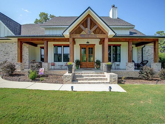 PRICED BELOW APPRAISAL! 4 Bed/ 3.5 Bath Modern farmhouse style home in Lake Hamilton School District. This home was built in 2021 with an open concept, woodburning fireplace, huge cypress beams both inside and out. This home boasts luxury finishes throughout including: quartz countertops in the kitchen and butler pantry, granite countertops in bathrooms. Large walk-in pantry, double ovens, farmhouse sink, cathedral ceiling, 8' six panel solid core doors, mahogany front doors with Flemish glass, covered back porch with outdoor kitchen, soaker tub and walk-in shower in the master. Stylish shiplap walls in the living room, master bath and mudroom. Large walk-in closet accessible from both the master bath and laundry room. All LVP flooring, fenced backyard, jack/jill bathroom downstairs, private bathroom in the upstairs bedroom that could be used for a home office. The exterior of this home is a combination of board and batten siding and brick. The front and back covered porch/ outdoor kitchen include stained tongue and groove ceilings. Garden area and new, custom built garden shed. Meticulous attention and love given to every square foot. New roof/gutter. 2-8 ac could be purchased.
