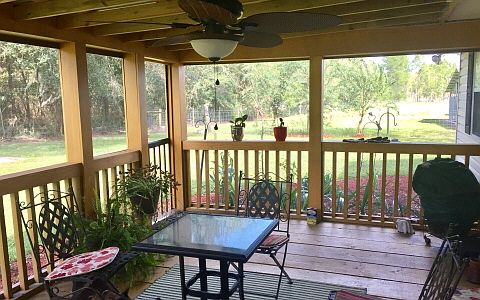 Beautiful mini farm with ranch style home. Has 3 pastures fenced and cross fenced with 32' X 39' covered shelter with 4 kennels and storage room. Large man made pond and carport large enough for your boat or RV. Screened deck off the back overlooking a picnic area and fire pit. Second septic and power pole on second parcel Inside, newer stainless steel appliances and additional cabinetry in utility room for extra storage. Split plan, master has a walk in shower and double vanities. Flood insurance quote as low as $389/year.