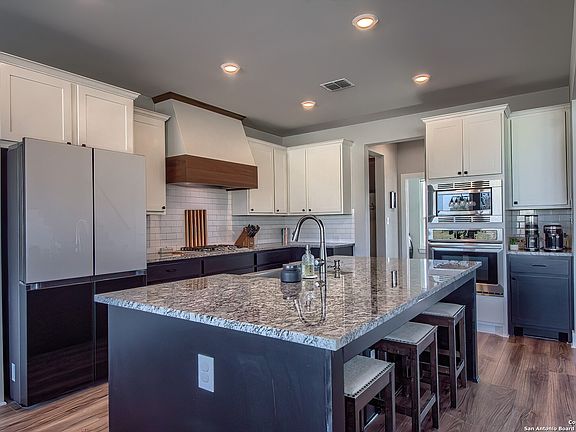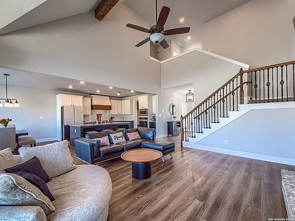 Need space? . . . Welcome to your Texas escape! This stunning 2,392 sq ft home, built in 2022, sits on nearly 7 acres of gently rolling land with a bee agricultural exemption-keeping your taxes low while you enjoy the beauty of the countryside. Step inside and fall in love with the open-concept design featuring soaring ceilings accented by rich wood beams, gleaming granite countertops, and floor-to-ceiling windows that fill the living area with warm natural light. At the heart of this home is the chef's kitchen, a true showpiece boasting gas cooking, an oversized island, and elegant finishes that make it perfect for both entertaining and everyday family life. Whether you're preparing dinner or hosting friends, this kitchen is where everyone will want to gather. The spacious primary suite is conveniently located on the first floor, along with a dedicated study ideal for remote work or quiet reflection. The primary closet offers natural light and built-in organization-one of those "wow" touches you didn't know you needed until now. Upstairs, you'll find generous secondary bedrooms and a walk-in, floored attic offering tons of accessible storage space. The three-car side-entry garage provides both functionality and curb appeal. Enjoy energy savings year-round with solar panels and a water softener system that add comfort, convenience, and efficiency to your daily life. Step out back to the covered rear porch, the ideal place to sip your morning coffee or unwind with evening views of breathtaking Texas sunsets. This home perfectly blends modern luxury, thoughtful design, and country tranquility-all just minutes from La Vernia's charming shops, schools, and restaurants.