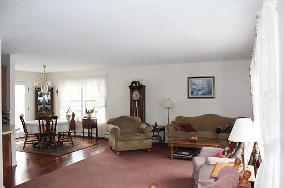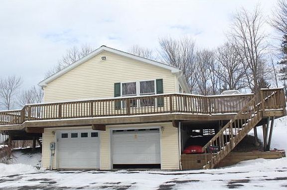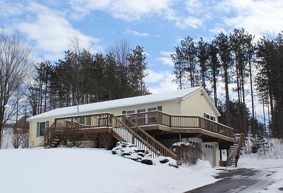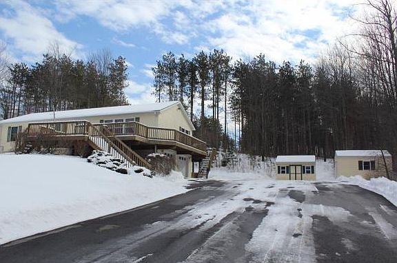 On 4.6 acres. 2002 ranch has an attached 2 car garage and Xtra wide driveway that can accommodate 11 cars, 1000sf deck wraps around house w/views. Central Air and Propane heat $150mo. Additionally, designed for the car collector,behind residential area with a seperate 300 ft drive, is a 70x40 parking area for the 50x30 mechanics garage with lift. Awesome