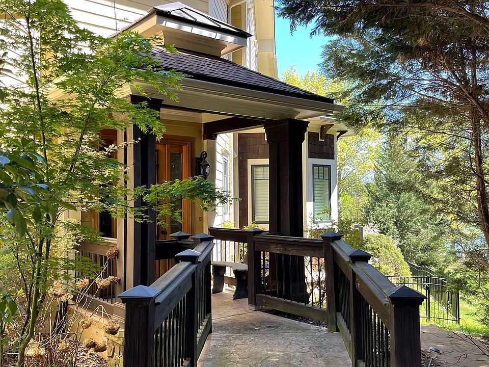 Outstanding must see a lakefront home, with mountain and wonderful lake views. The home boasts twelve foot ceilings with intricate crown molding throughout the home. Hardwood floors, elevator, gas stove, two fireplaces, one in the living room and one in Master bedroom. Wonderful three bedrooms, two and one half baths, office, bonus room, eat in kitchen. Balcony off the second bedroom, covered porch off master bedroom. The backyard fenced with a walkway to the pergola, firepit and your private covered dock. Summer kitchen on a large wrap around deck.