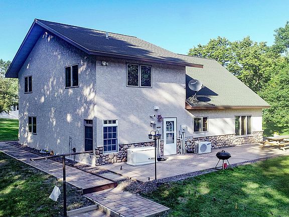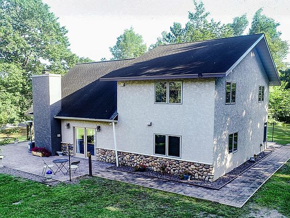 This three-bedroom, Two and a half bath home sits on a beautifully landscaped ten-acre lot filled with apple trees, raspberry patch, a seven-foot-deep pond with a circulating stone filled stream. The exterior has a wraparound stamped and dyed concrete patio with a great view of the property. The interior features an open floor plan with vaulted ceilings, breakfast bar, formal dining area, main floor Bedroom with a full bath, living room with a fireplace, The loft has two bedrooms. The power to the home is backed up by a 22kw Generac generator.