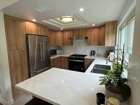 Step inside and be greeted by a completely remodeled interior, offering a fresh and modern feel throughout. Enjoy cooking in the brand-new kitchen, featuring stylish cabinets and updated finishes. The home boasts elegant wood-like flooring and fresh new paint, creating a bright and inviting atmosphere. Both bathrooms have been tastefully remodeled, providing a touch of luxury.