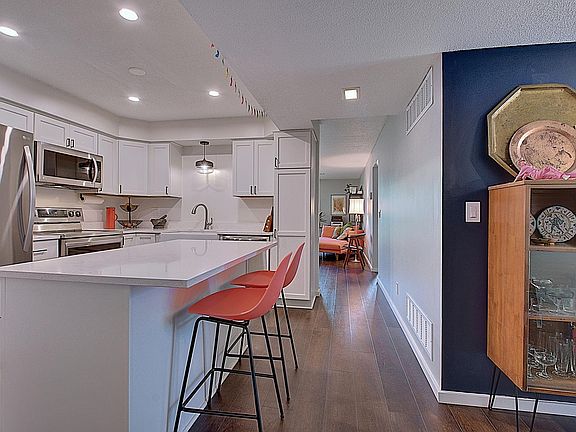 Chicly updated top-floor and vaulted 2B, 2BA condo unit conveniently located within walking distance of Uptown, Downtown, and Loring Park! Boasting a premium kitchen renovation with enameled cabinets, quartz counters, porcelain farm sink, dovetailed & soft-close drawers, ample storage, and an in-unit washer/dryer. The vaulted living room boasts a wood-burning fireplace, luxury vinyl plank flooring, and a west-facing balcony deck. Newer A/C and brand-new Marvin windows & patio door! Multiple flexible spaces including a formal dining room, and/or create the ultimate in-home office. Underground heated parking (stall #307). Enjoy grilling or lounging on the rooftop deck while soaking in views of Downtown and Uptown!
