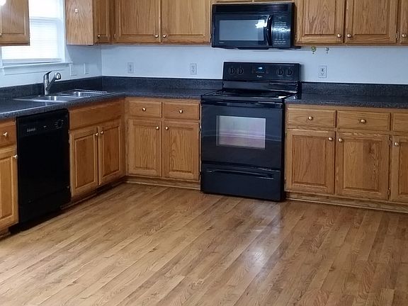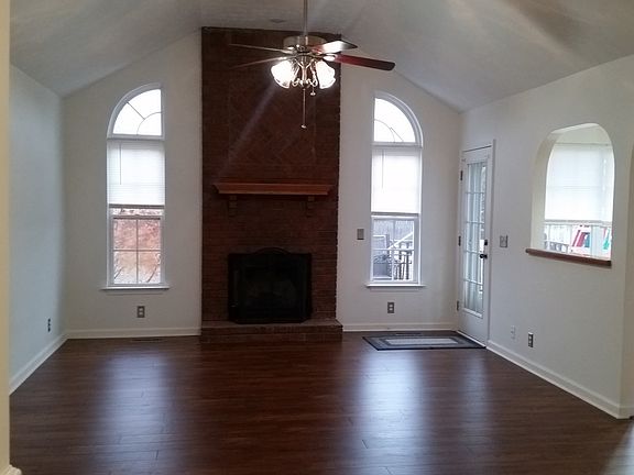 Move in ready with new flooring throughout, fresh paint, new faucets, toilets, vent covers and blinds. 3 bedroom, 2 bath with entry foyer. Vaulted ceilings, brick fireplace, recessed lighting and large kitchen with tons of cabinets. All appliances remain. Beautiful yard with large deck. Free One Year Home Warranty for buyers. Storage shed stays.
