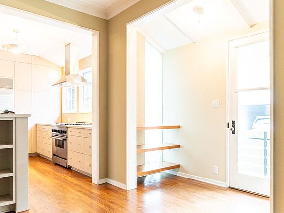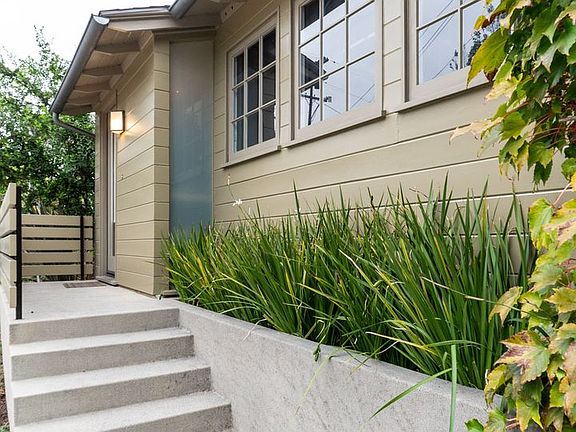 Kitchen is flooded with natural light and has built in Sub-Zero refrigerator, 36" Thermador range custom low profile cabinetry and laundry closet. Upper level comprises bedroom ( or office) w/ small patio, remodeled shared bath and primary suite with gorgeous 3/4 bath with teak cabinets and skylight illuminated oversized shower. Out door spaces are lush, cozy and private.