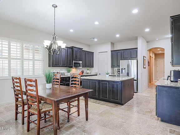 Inside, elegance abounds with high ceilings, rich hardwood cabinetry, granite countertops, plantation shutters, and custom draperies that create an inviting and sophisticated atmosphere. The chipped-edge travertine floors add warmth and character, while the open-concept layout makes entertaining a breeze.