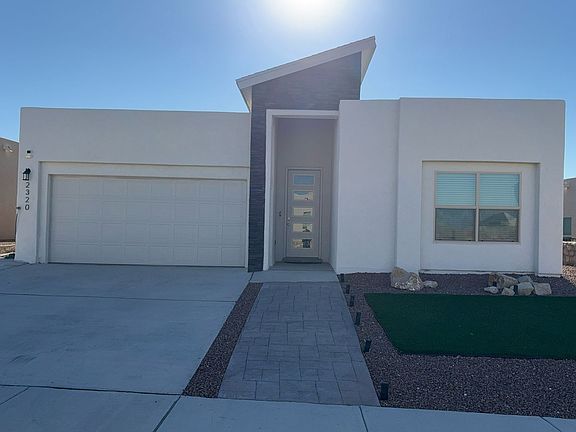 Welcome to this stunning 3-bedroom, 2.5-bathroom home located in the vibrant city of El Paso, TX. This property boasts a range of modern amenities that ensure a comfortable and convenient lifestyle. The home features refrigerated A/C, perfect for those hot Texas summers, and a range of stainless steel appliances that add a sleek touch to the kitchen. The kitchen also features a handy island, a beautiful backsplash, and granite countertops. The home offers washer/dryer hookups, window coverings, and ceiling fans for added comfort. The flooring is a mix of elegant ceramic and cozy carpeting in the bedrooms. The master suite includes a walk-in closet and a double vanity sink for extra convenience. The double car garage provides ample space for parking and storage. The property is beautifully landscaped, with both the front and back yards offering a serene outdoor space to enjoy. This home is a perfect blend of style, comfort, and convenience.